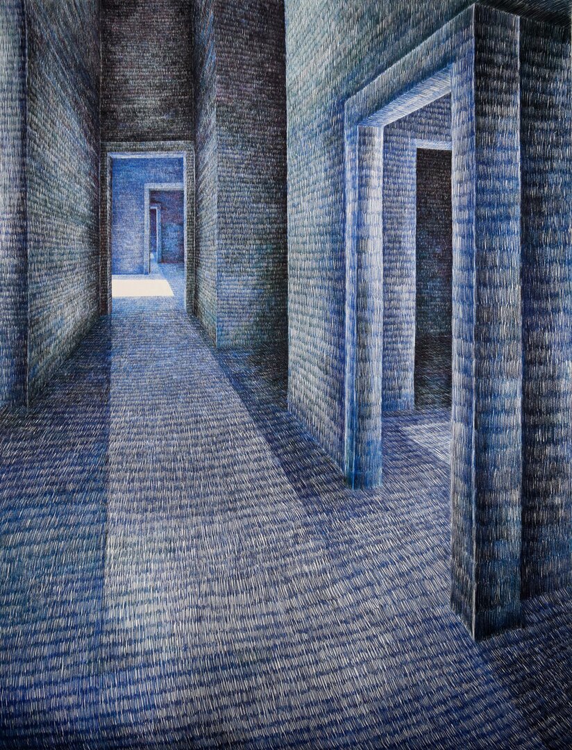 Zeichnungen von beeindruckender Feinheit, Objekte mit organischen Formen wie aus einer anderen Welt. Feine Linien auf übergroßen Papierbahnen schaffen Motive und Perspektiven, die den Eindruck vermitteln, man könne direkt in sie hineinsteigen. Alles scheint in Bewegung – so lässt sich der erste Eindruck von Ingeborg Dammann-Arndts Kunst treffend beschreiben.